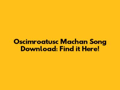 Download Oscimroatusc Machan Song: Find It Here!