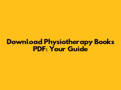 Download Physiotherapy Books PDF: Your Guide
