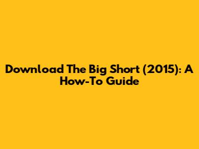 Download The Big Short (2015): A How-To Guide