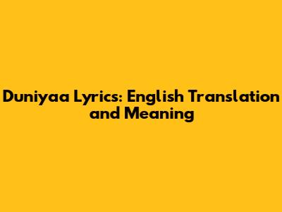 Duniyaa Lyrics: English Translation And Meaning