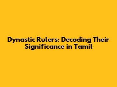 Dynastic Rulers: Unveiling Their Meaning In Tamil