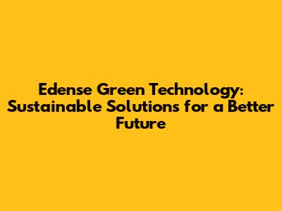 Edense Green Technology: Sustainable Solutions For A Better Future