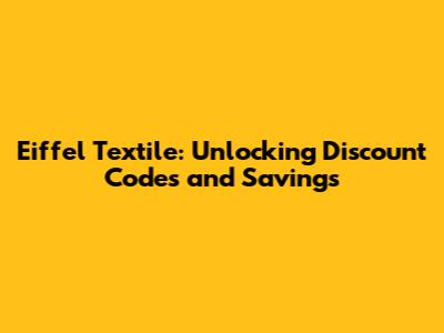Finding and using Eiffel Textile discount codes doesn't have to be a daunting task. By utilizing the strategies outlined in this guide, you can unlock significant savings and enjoy your favorite textiles without breaking the bank. Happy shopping, and may your savings be ever in your favor! Now go forth and conquer those textile deals!