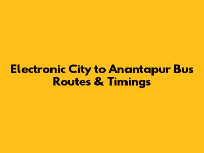 Electronic City To Anantapur Bus Routes & Timings
