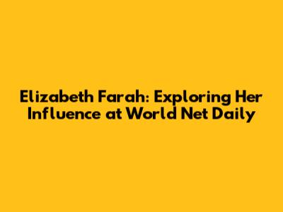 Hey guys! Ever wondered about the people behind the news you read? Today, we're diving into the world of Elizabeth Farah, a prominent figure at World Net Daily (WND). You might have stumbled upon her name and wondered, "Who is she?" Well, buckle up because we're about to unpack her journey, her role at WND, and her impact on the conservative media landscape. Whether you're a seasoned news junkie or just curious about the voices shaping our world, this is for you. Get ready to explore the fascinating story of a woman who's made a significant mark in the realm of online journalism.