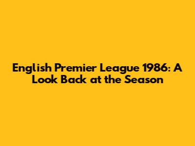 English Premier League 1986: A Look Back At The Season