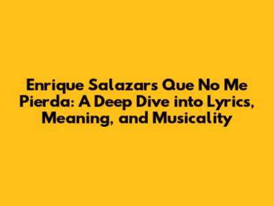 Hey music lovers! Today, we're diving deep into the captivating world of Enrique Salazar's "Que No Me Pierda." This song isn't just a collection of notes and words; it's a journey, a story, a feeling. In this article, we'll unpack the lyrics, explore the meaning, and appreciate the musicality that makes this track so special. So, buckle up, grab your headphones, and let's get started!