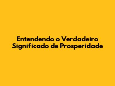 Entendendo O Verdadeiro Significado De Prosperidade