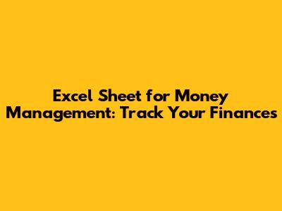 Excel Sheet For Money Management: Track Your Finances