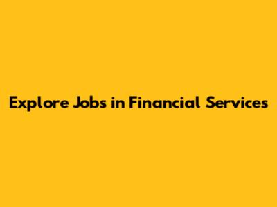 Explore Jobs In Financial Services