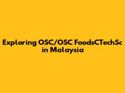 Exploring OSC/OSC FoodsCTechSc In Malaysia