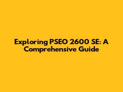 Exploring PSEO 2600 SE: A Comprehensive Guide