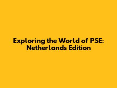 Exploring The World Of PSE: Netherlands Edition