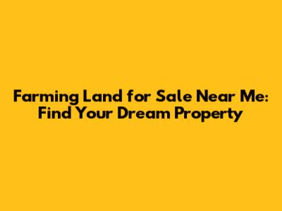 Farming Land For Sale Near Me: Find Your Dream Property