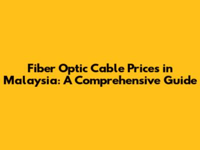 Fiber Optic Cable Prices In Malaysia: A Comprehensive Guide