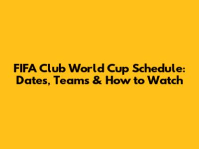 FIFA Club World Cup Schedule: Dates, Teams & How To Watch