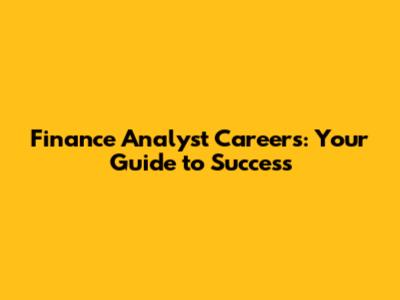 Finance Analyst Careers: Your Guide To Success