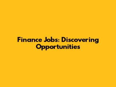 Finance Jobs: Discovering Opportunities