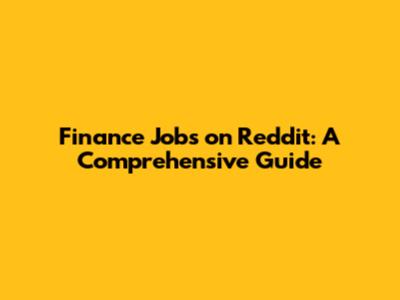 Finance Jobs On Reddit: A Comprehensive Guide