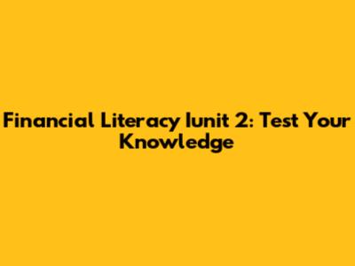 Financial Literacy Iunit 2: Test Your Knowledge