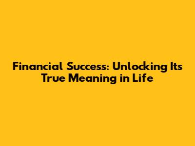 Financial Success: Unlocking Its True Meaning In Life