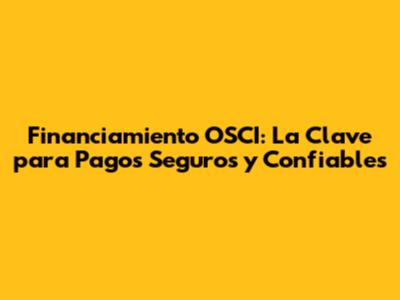 Financiamiento OSCI: Pagos Seguros Y Confianza Total