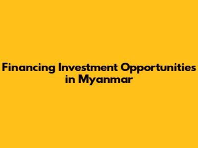 Financing Investment Opportunities In Myanmar