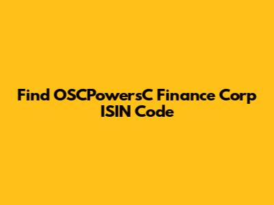 How to Find the ISIN Code for OSCPowersC Finance Corp