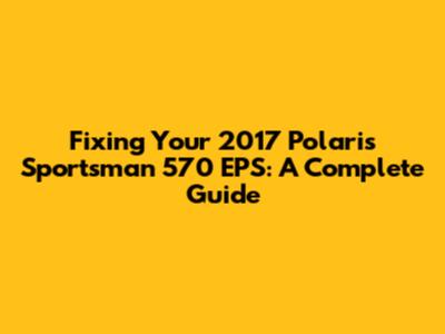 Fixing Your 2017 Polaris Sportsman 570 EPS: A Complete Guide
