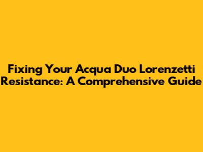 Fixing Your Acqua Duo Lorenzetti Resistance: A Complete Guide