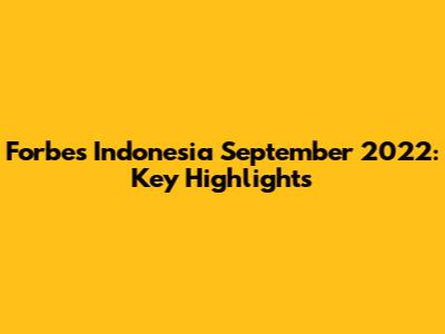 Forbes Indonesia September 2022: Key Highlights