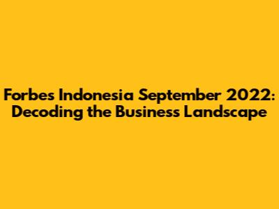 Forbes Indonesia September 2022: Key Insights & Trends