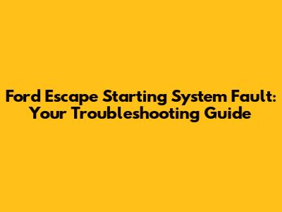 Here are some extra tips to help you troubleshoot a Ford Escape starting system fault, and prevent future issues: