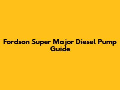 Fordson Super Major Diesel Pump Guide