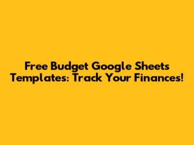 Free Budget Google Sheets Templates: Track Your Finances!