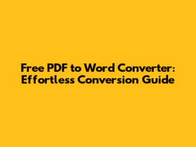 Free PDF To Word Converter: Effortless Conversion Guide