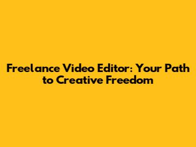 Freelance Video Editor: Your Path To Creative Freedom