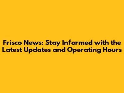 Frisco News: Latest Updates And Operating Hours