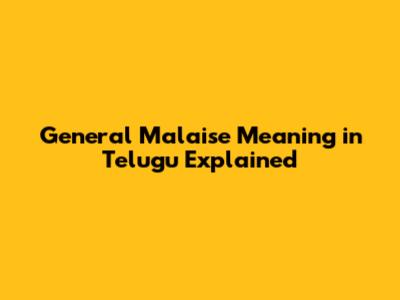 General Malaise Meaning In Telugu Explained