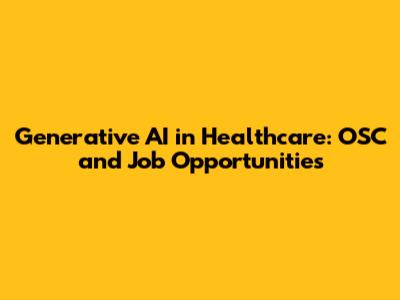 Generative AI In Healthcare: OSC And Job Opportunities