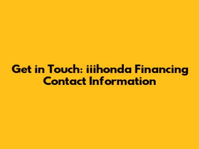 Get In Touch: Iiihonda Financing Contact Information