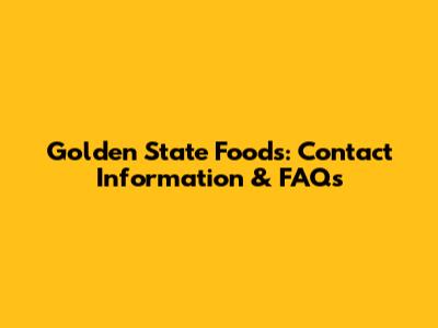 Golden State Foods: Contact Information & FAQs