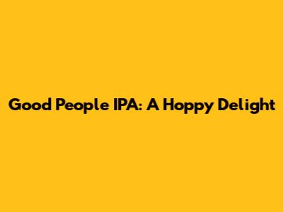 Good People IPA: A Hoppy Delight