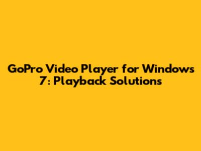 GoPro Video Player For Windows 7: Playback Solutions