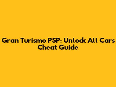 Gran Turismo On PSP: Unlock All Cars Cheat Guide