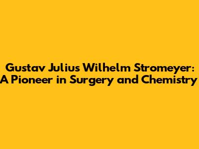 Let's dive into the fascinating life and groundbreaking contributions of Gustav Julius Wilhelm Stromeyer, a name that might not be widely recognized today, but whose impact on the fields of surgery and chemistry is undeniable. Stromeyer wasn't just a run-of-the-mill academic; he was a true innovator, pushing the boundaries of medical science and laying the groundwork for many advancements we take for granted today. His work spanned both the meticulous precision of surgical practice and the analytical rigor of chemical investigation, making him a unique figure in the history of science. Guys, we're going to break down his key achievements, explore the context of his era, and understand why his legacy continues to resonate within the scientific community.