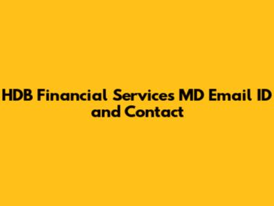 HDB Financial Services MD Email ID And Contact
