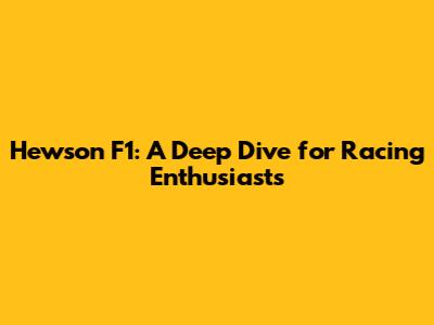 Hewson F1: A Deep Dive For Racing Enthusiasts