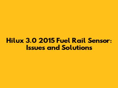 Hilux 3.0 2015 Fuel Rail Sensor: Issues And Solutions