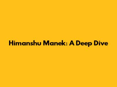 Himanshu Manek: A Deep Dive
